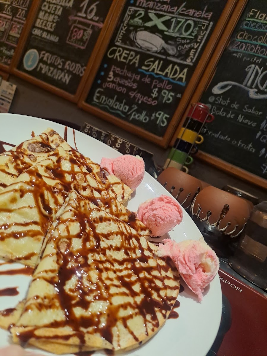 The star of the menu at Café Café & Crepas is undoubtedly their exquisite crepes, which are the talk of the town. Customers can't stop raving about the rich flavors and delicate craftsmanship that go into each dish. Imagine biting into a freshly made crepe, the soft texture melting in your mouth as it is filled with a variety of delectable ingredients. Whether you're in the mood for a classic Nutella and banana combination or something more savory, like a crepe stuffed with ham and cheese, every option promises to be a treat for your taste buds.